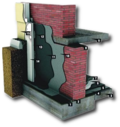 schemat hydroizolacji fundmanetów w systemie bitumicznym dyspersyjnym